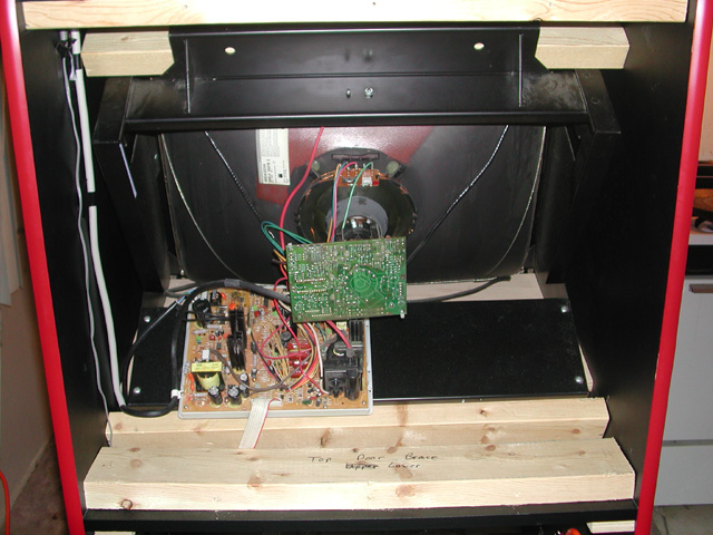 The cabinet with the control panel removed. Because this machine uses an oversized control panel, it is critical that it be removable (otherwise you'd never get it through a doorway). |