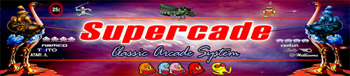 MarqueeThe marquee that I used is based on a design available at Massive MAME. I cleaned up the graphics a bit, and put my own text in. I replaced the background nebula with a slightly more colorful one. I also changed the aspect ratio for my machine.